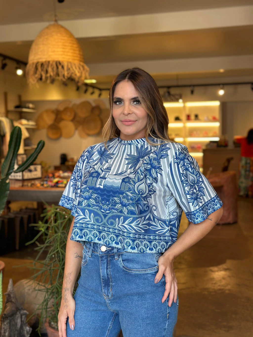 T-shirt básica estampada afeto tropical. Com decote redondo clássico e mangas curtas, esta peça traz um toque de leveza com uma estampa única. Perfeita para um visual casual ou para combinar com acessórios mais marcantes em ocasiões especiais. FARM RIO original - verão 26.